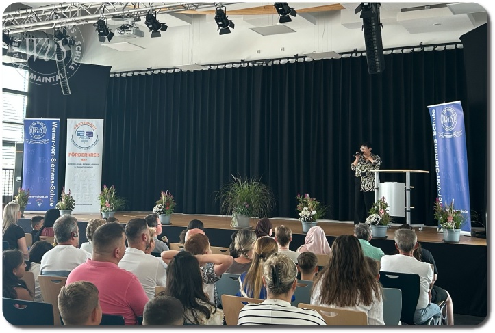 Unter dem herzlichen Motto „Herzlich willkommen!“ wurden die 59 neuen Fünftklässlerinnen und Fünftklässler am Montag, dem 18. August 2025, an der Werner-von-Siemens-Schule begrüßt. In der vollbesetzten Mensa erwartete die Kinder, ihre Eltern, Verwandten und Freunde eine festliche Einschulungsfeier.