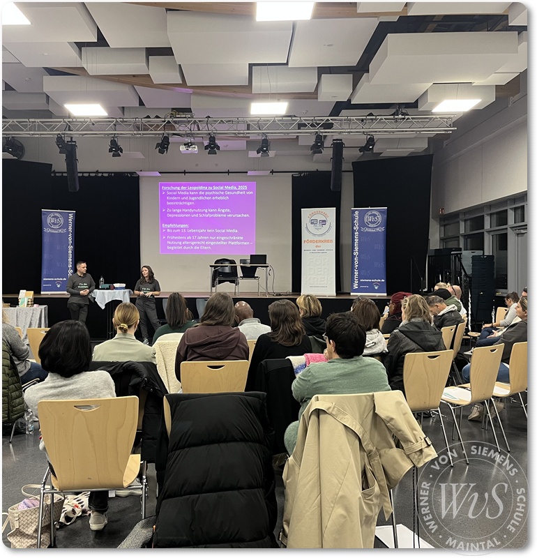 Ein ganz besonderer Elternabend fand am 23. Oktober 2025 an der Werner-von-Siemens-Schule in Maintal statt. Unter dem Titel „Kinder und digitale Medien – Wie wir gemeinsam eine gesunde Balance fördern können“ luden Carolin und Thomas Ort zu einem Vortrag ein, der Eltern und Lehrkräften gleichermaßen wertvolle Impulse gab.