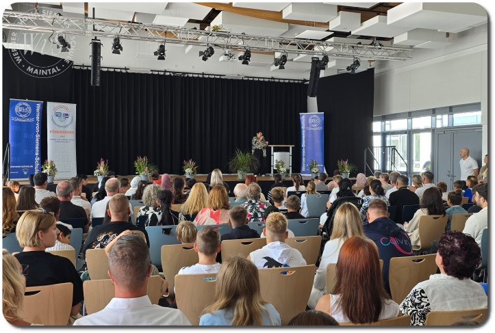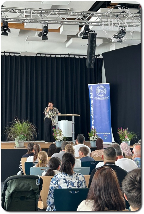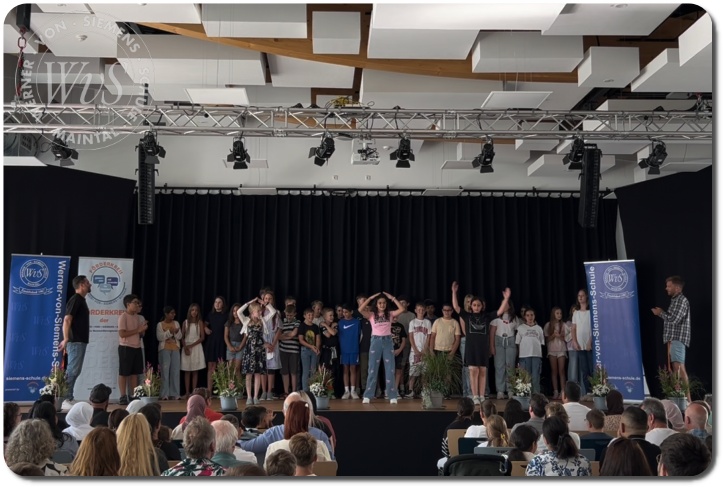 Unter dem herzlichen Motto „Herzlich willkommen!“ wurden die 59 neuen Fünftklässlerinnen und Fünftklässler am Montag, dem 18. August 2025, an der Werner-von-Siemens-Schule begrüßt. In der vollbesetzten Mensa erwartete die Kinder, ihre Eltern, Verwandten und Freunde eine festliche Einschulungsfeier.
